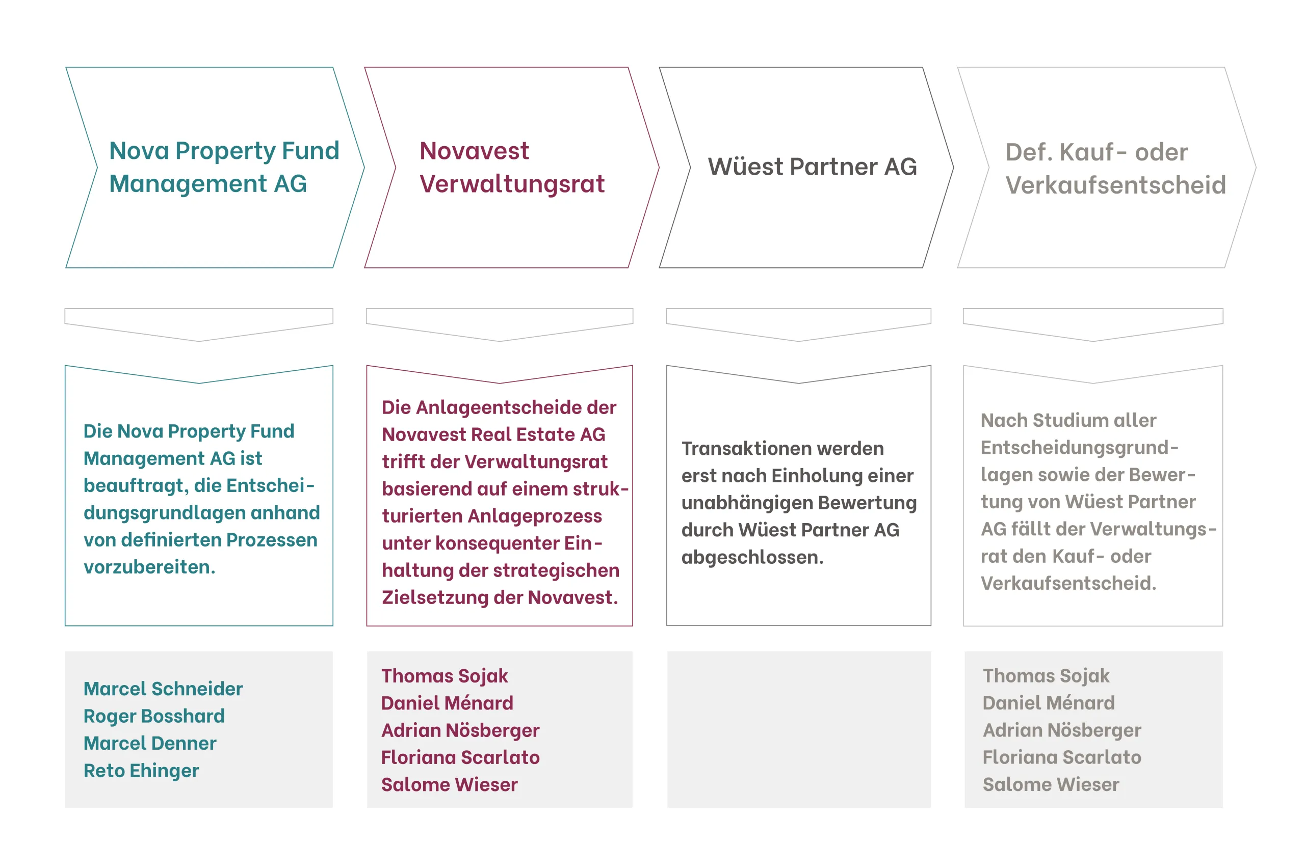 Zusätzlich begleitet ein kontinuierliches Risikomanagement jeden einzelnen Schritt im gesamten Anlageprozess. Und weil Vertrauen gut, Kontrolle jedoch besser ist, legen wir bei der fortwährenden Optimierung des Portfolios allergrössten Wert auf Transparenz. Für eine erfolgreiche Zukunft made by Novavest Real Estate AG.